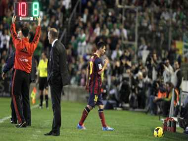 रविवार देर रात खेले गए मुकाबले में 20 मिनट बाद ही मेसी को मैदान छोड़ना पड़ा और बार्सिलोना ने उसकी जगह आंद्रे इनिएस्ता को मैदान पर उतारा। 35वें मिनट में ब्राजीली स्टार खिलाड़ी नेमार ने सेस फाब्रेगास के पास पर मैच का पहला गोल दाग बार्सिलोना को 1-0 से आगे कर दिया। दो मिनट बाद ही पेड्रो रोड्रिग्ज ने गोल कर बढ़त को दोगुना कर दिया। इसके फाब्रेगास ने 63वें और 79वें मिनट में गोल कर बार्सिलोना को 4-0 से आगे कर दिया। मैच के अंतिम मिनटों में बार्सिलोना के डानी एल्वस को फाउल करने पर पीला कार्ड दिखाया गया और बेटिस को पेनाल्टी दी गई। जॉर्ज मोलिना ने पेनाल्टी को गोल में तब्दील करते हुए बेटिस की ओर से मैच का एकमात्र गोल दागा। रविवार को खेले गए अन्य मुकाबलों में विलारीयल ने अंक तालिका में दूसरे नंबर पर चल रहे एटलेटिको मैड्रिड को 1-1 से बराबरी पर रोका, जबकि सेविला ने एस्पानेयोल को 3-1 से मात दी।